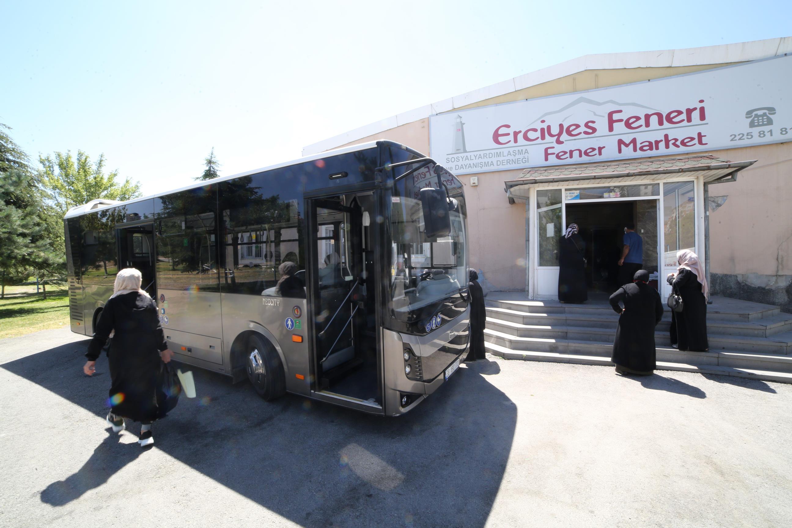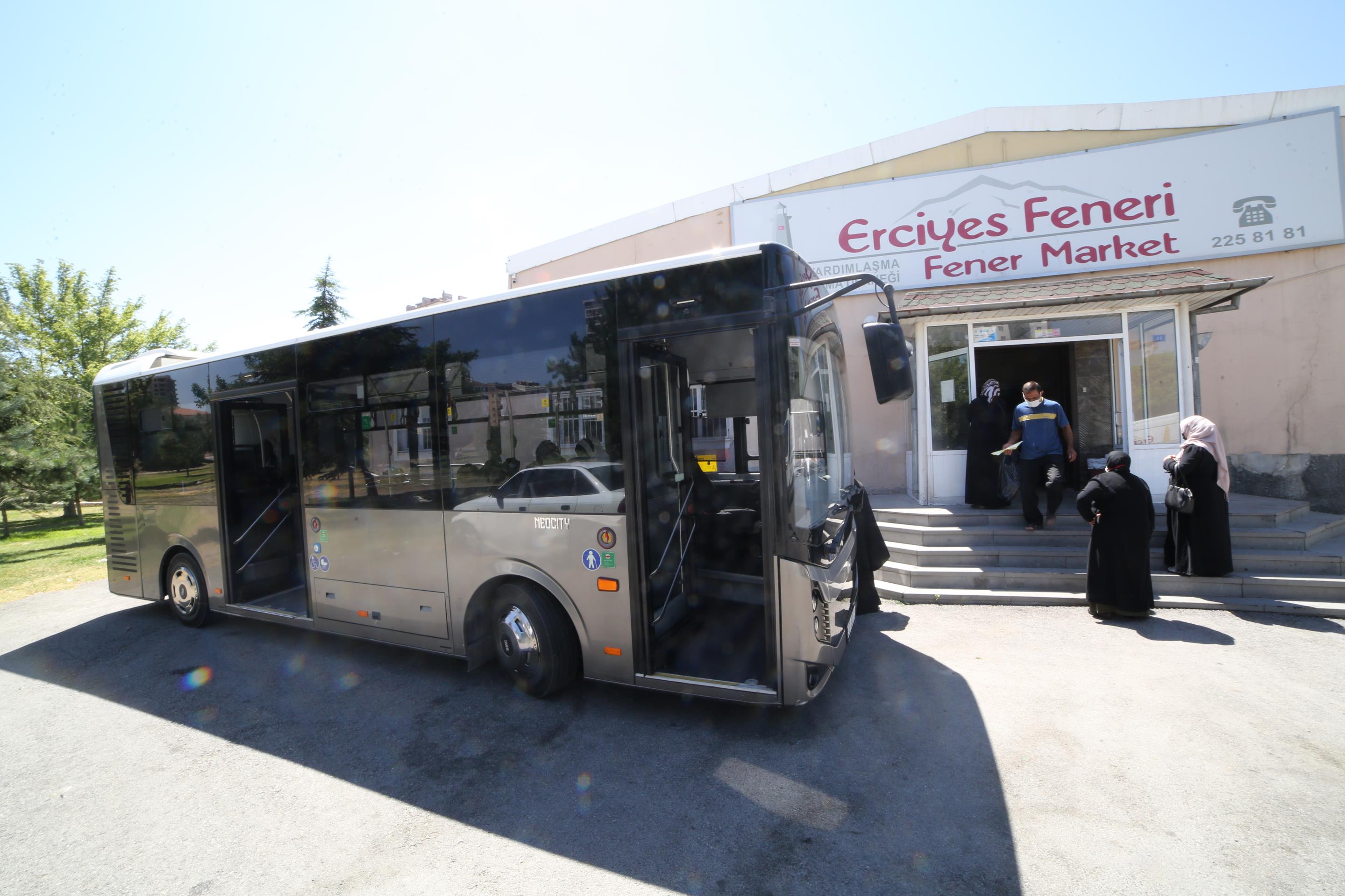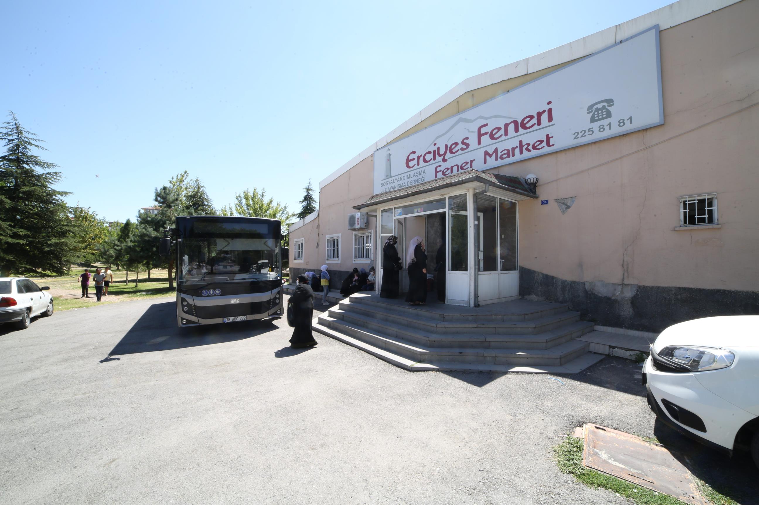 Derneğimizde kayıtlı olan tüm aile ve fertlerine her yıl ortalama 30 güne denk gelecek şekilde yıl içerisinde periyodik olarak 12 sefer (aylık) gıda yardımı ve alışveriş sonu ücretsiz servis imkânı sağlamaktadır. Market alışverişini yapan ailelerimiz, alışverişlerini tamamladıktan sonra derneğimize ait otobüs ile evlerine kadar bırakılırlar. Ailelerin evlerine ulaşımları sırasında problem yaşamaması için personelimiz gereken bütün hassasiyeti göstermektedir. Ailelerin rencide olmaması için otobüs üzerine derneğimizin reklam çalışması özellikle yapılmamıştır.
